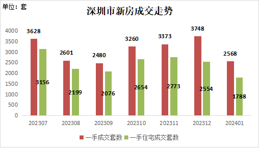 据统计,2024年1月份全市新房共成交2,568套,同比增长22.5%,环比下降31.5%(其中新房住宅成交1,788套,同比增长9.8%,环比下降30.0%)。