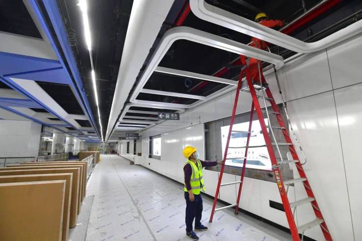 由中国电建承建的地铁12号线,现已全面进入站后安装装修施工阶段。赤湾山下,左炮台东站一眼望去还是繁忙工地,随工作人员由进站口逐阶而下,一个已基本完成装修的地铁站厅顿时跃然眼前。