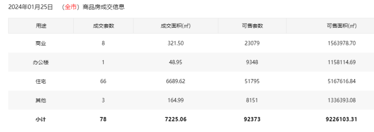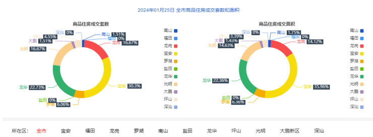 2024年1月25日新房住宅共网签66套。宝安20套;福田0套;龙岗11套;罗湖4套;南山1套;盐田0套;龙华15套;坪山3套;光明11套;大鹏1套;深汕0套。