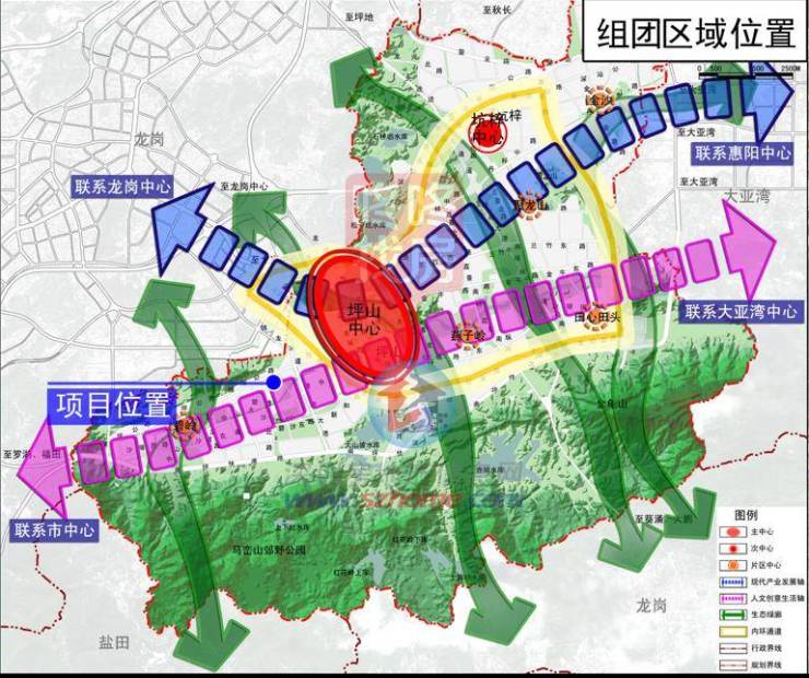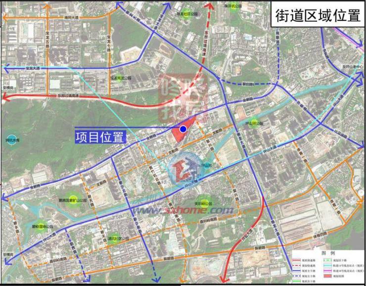 项目位于深圳市坪山区坪山街道金碧路和沙湖路交汇处,南靠清湖路、北临金碧路和T2云轨站点,西近沙湖路。