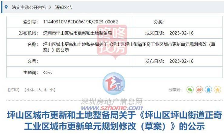 近日,坪山区城市更新和土地整备局发布《坪山区坪山街道正奇工业区城市更新单元规划修改(草案)》。