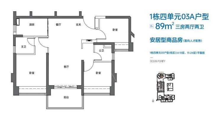 三房方面:三房一共两个户型03A和04户型,03户型只有4~24楼有一共20套,04户型36套,分布于全部楼层。