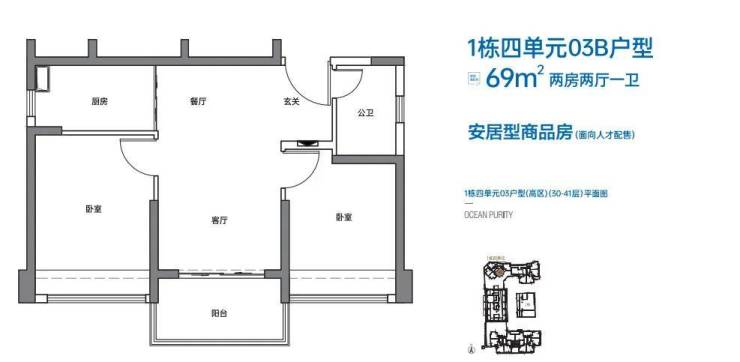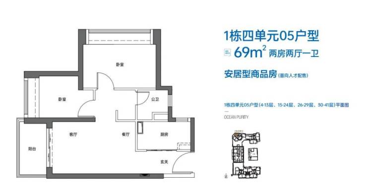 本次配售房源位于1栋四单元,共180套,其中:两房户型124套(含4套无障碍住房),建筑面积约69㎡;三房户型56套,建筑面积约89㎡。