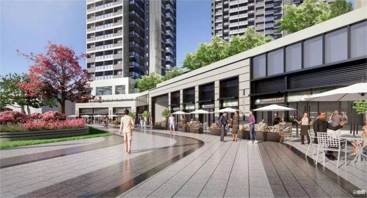 项目园林消融公园与家的边界,通过商业外街、社区公园与全龄架空层,构建三幅节奏不同的诗意画卷,营造缤纷多彩的生活场景。