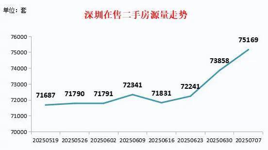 最近两周已经从7.2万套升高至7.5万套,截至2025年7月7日,全市共有75169套有效二手房源在售,较上周增加1311套。