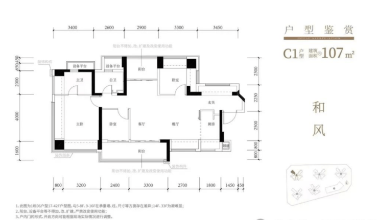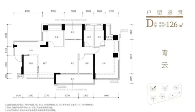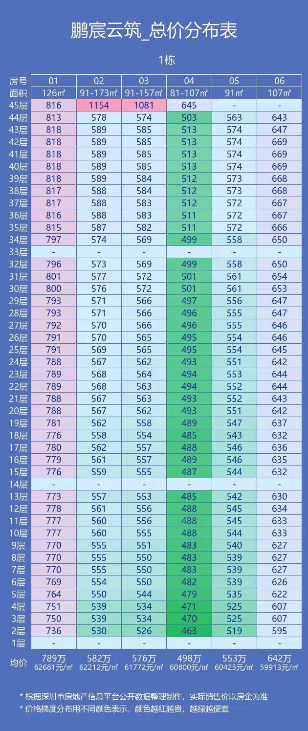 鹏宸云筑本批主推1栋新品,共250套房源,户型为建面约81㎡、91㎡、107㎡、126㎡3-4房产品,备案单价约5.56-6.89万/㎡,折后单价约5.-5.85万/㎡,总价区间约416-696万。