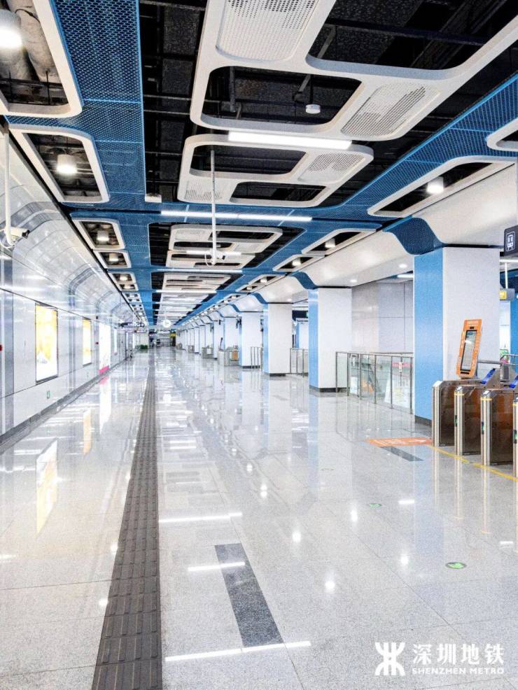 毗邻大疆、鹏城实验室等科技地标,车站以“科技无境·探索不止”为主题,顶部设计融入无人机流线与螺旋桨灵感,配合流动灯光,仿佛置身未来空间。