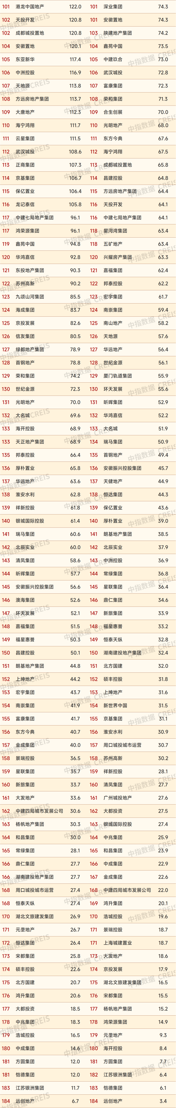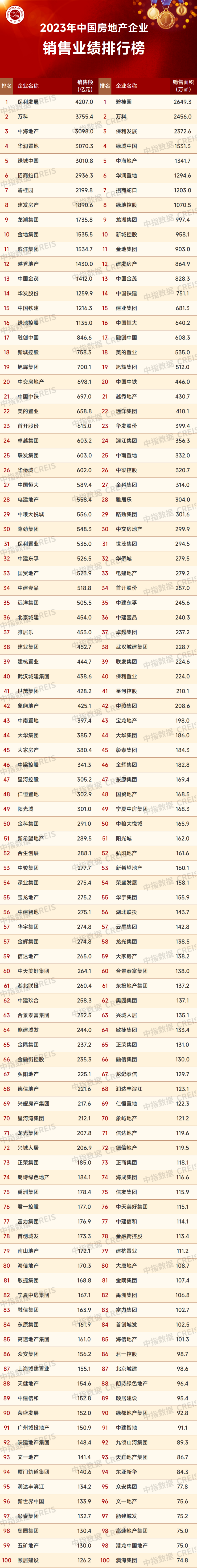2023年12月31日,中指研究院发布《2023年中国房地产销售额百亿企业排行榜》。
