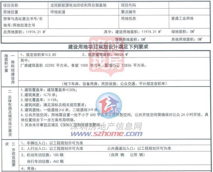 据资料显示,该地块将建设新能源汽车退役动力蓄电池综合利用总部项目,意向用地单位为深圳市杰成镍钴新能源科技有限公司,是持有工信部“白名单”规范企业的国家级高新技术企业、深圳市专精特新企业。