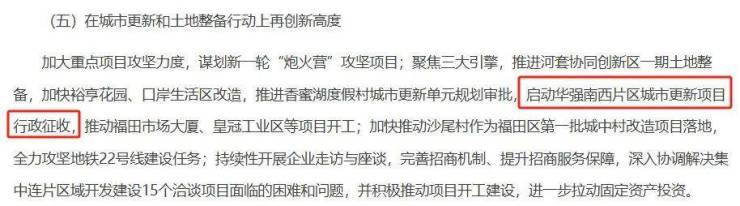 2023年7月,公告福田区福田街道华强南西片区城市更新单元的市场主体为深圳华强财富置业有限公司。