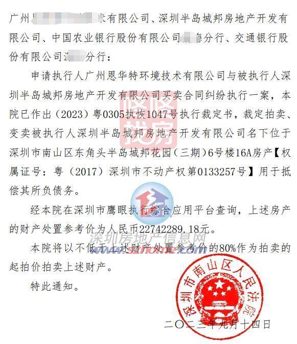 最低965.7万起拍,半岛城邦开发商名下8套房源要“法拍”了!