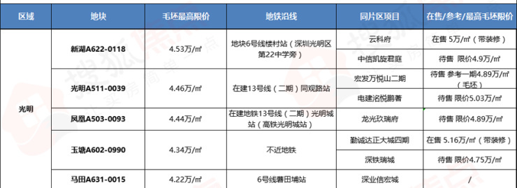 该宗地紧邻深圳是光明区第二十二中,较高毛坯限价4.53万/㎡。相较于楼村,目前光明科学公园周边的开发已经如火如。