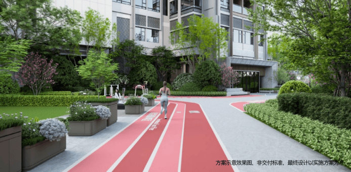 2大有氧跑道:园林中约180m元气跑道、运动场艺术跑道