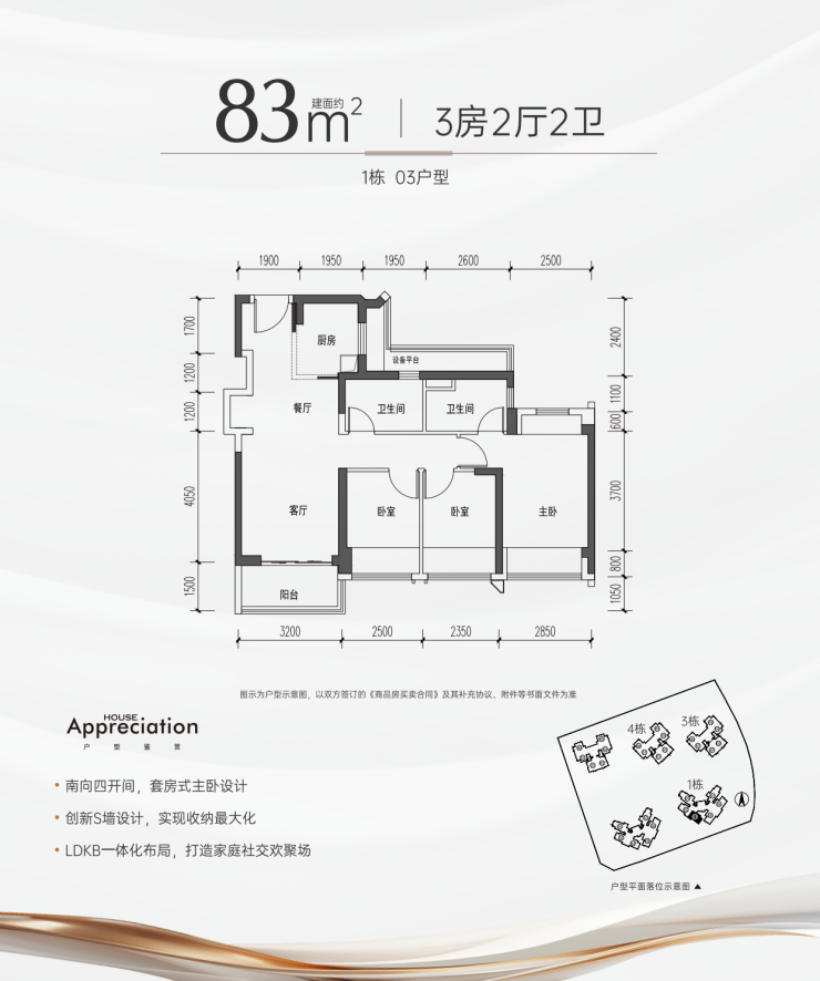 一步到位3房2卫户型,溪山禾玺御府仅需290万起,对比周边项目大省50万;