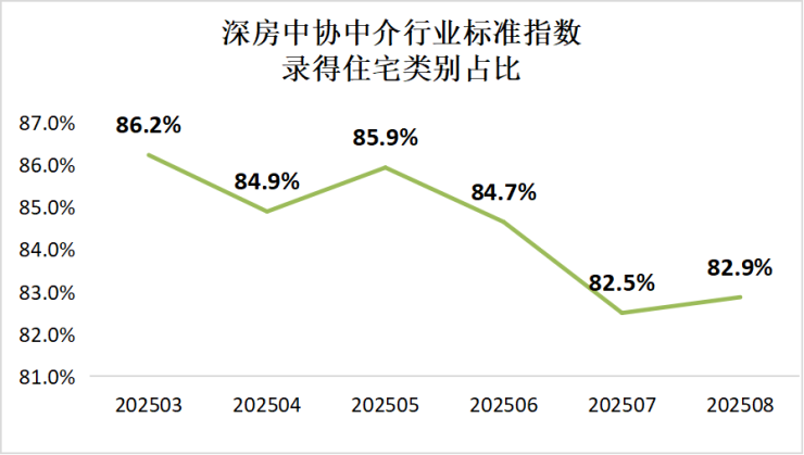 住宅占比:二手房住宅类别成交占比小幅回升,8月二手房住宅类别录得量占比为82.9%,较上月上升0.4个百分点。