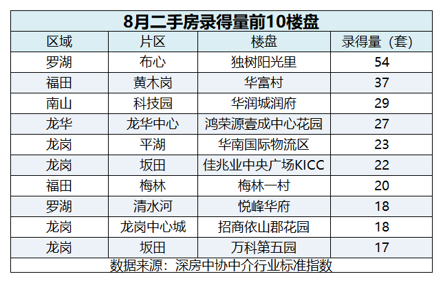 楼盘:具体到楼盘看,龙岗虽在区域、片区上都排第一,但楼盘录得量前三并无龙岗区域,表明传统的关内市场仍是存量房的兵家必争之地。具体如下: