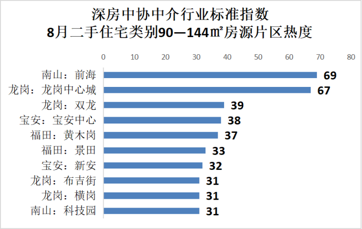 热门片区:承接上文看,增长较多的“90㎡≤面积<144㎡”面积段中,南山前海片区录得量最多,具体如下: