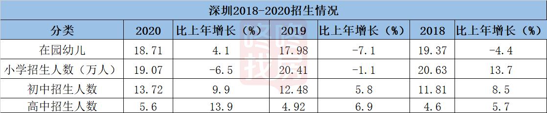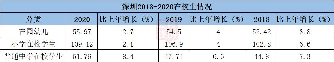 2、在校生人数,依然是增长的,但是增速减缓。2020年,深圳小学在校生人数109.12万人,同比增2.1%,但增速创了新低,2011-2018年,深圳在校小学生数量增速基本都维持在5%以上。