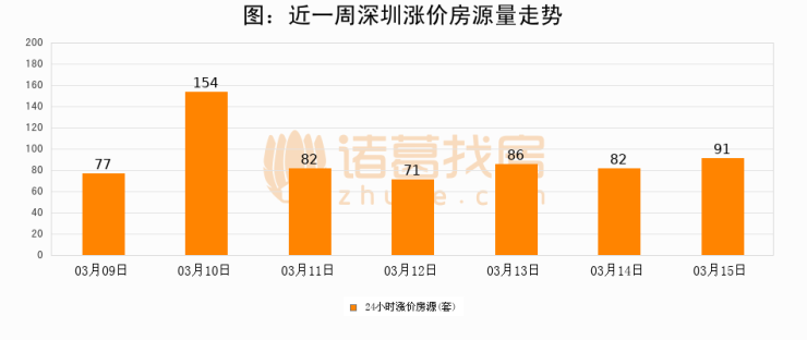 根据诸葛找房数据显示,深圳24小时涨价房源量为91套,较03月14日增加9套,环比上涨11%。与此同时,涨价房源占比小幅扩大,业主信心有所提升。