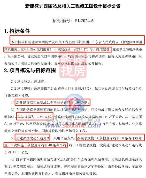 两个招标项目一个是负责施工图设计,一个是负责施工图审核,具有连贯性。其中,招标公告中相关资料也透露了一些关于西丽站值得关注的信息: