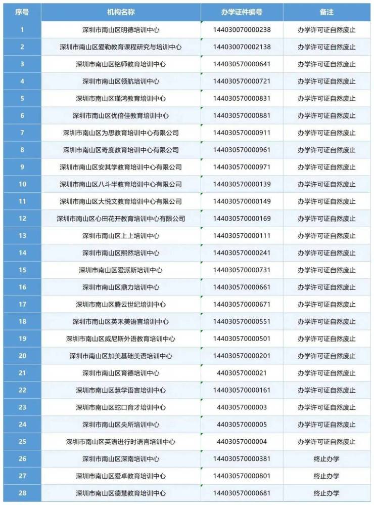 废止、终止办学!涉深圳28所培训机构