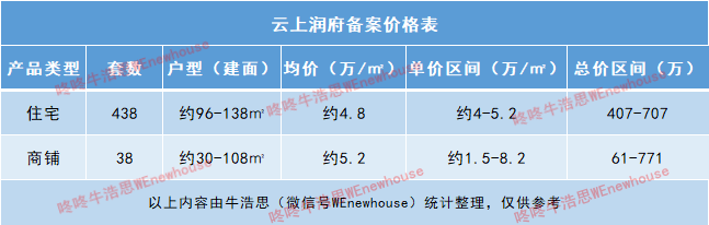此次加推房源中住宅438套,主推户型建面约96-138㎡,单价区间在4.08-5.22万元/㎡。总价区间在407-707万元/套,均价约4.795万元/㎡。