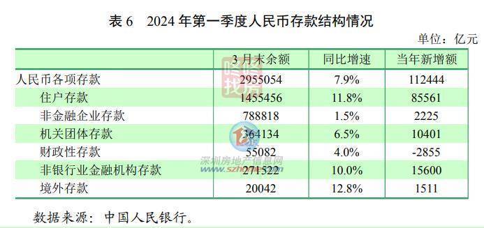 3 月末,金融机构本外币各项存款余额为 301.4 万亿元,同比增长 7.6%,比年初增加 11.5 万亿元。