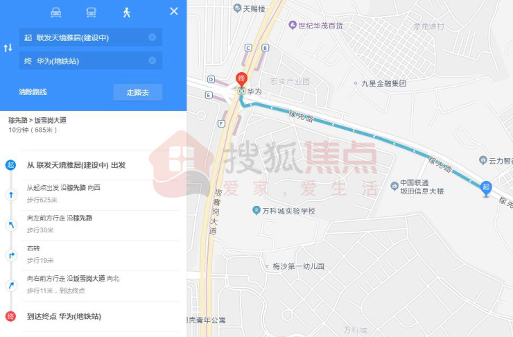 交通配套来看,项目距离最近的地铁站是10号线华为站,根据地图测距,步行约680多米,耗时10分钟左右。自驾周边有坂雪岗大道、五和大道,以及清平/梅观高速,出行还是相对便利。