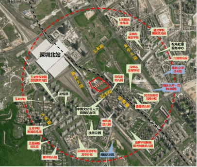 上图看的很清晰,距离深圳北站非常近,走路都可以。项目靠近白石龙社区,附近生活风味较为浓厚,星河cococity、玖龙荟等商场都很近,购物也便利。