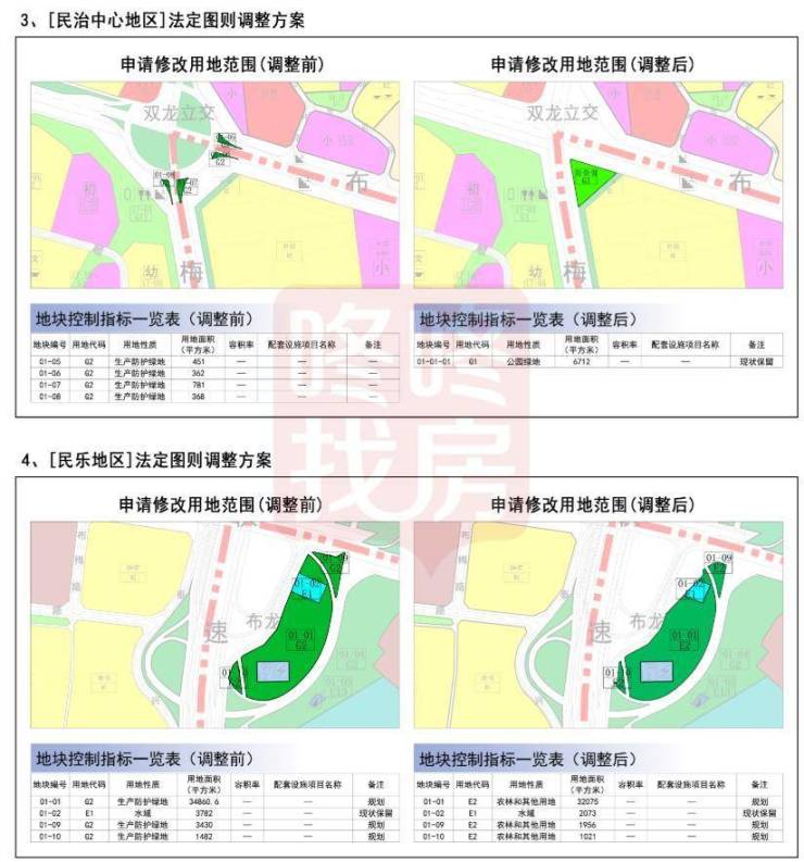 调整后为23个地块,分别为[龙华新城核心地区]法定图则01-10地块等16个地块、[龙华旧城核心地区]法定图则9-2-3地块等2个地块、[民治中心地区]法定图则01-01-01地块1个地块、[民乐地区]法定图则01-01地块等4个地块。