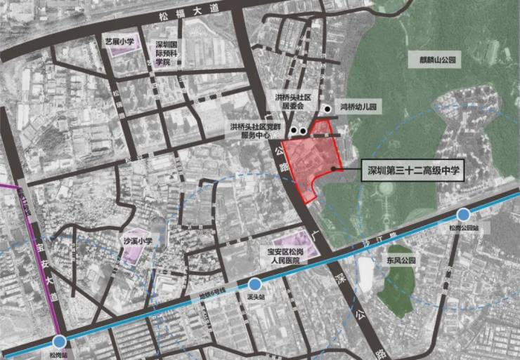 深圳市第三十二高级中学(方案、扩初)设计招标项目位于燕罗街道“湾区芯城”中,为宝安区乃至全市的学子提供二千余个宝贵的公办学位,切实解决区域公办普通高中学位需求。