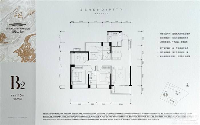 建面约116㎡4房2厅2卫B2户型