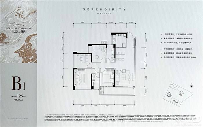建面约129㎡4房2厅2卫B1户型
