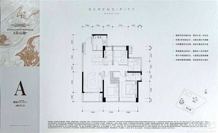 建面约111㎡4房2厅2卫A户型
