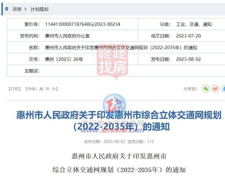 近日,惠州市人民政府印发《惠州市综合立体交通网规划(2022-2035年)》(以下简称规划)。