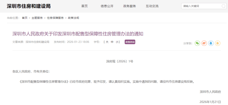 1月23日,《深圳市配售型保障性住房管理办法》(以下简称《办法》),正式发布。