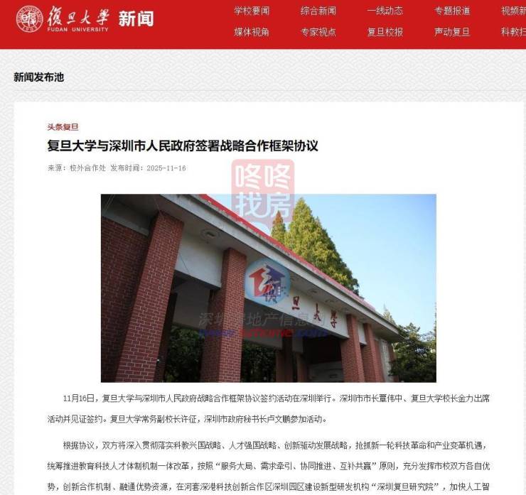 据深圳发布消息,11月16日,深圳市人民政府与复旦大学在深圳共同签署战略合作框架协议。