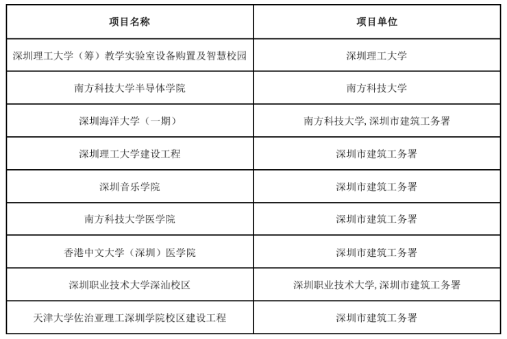 根据《深圳市2025年重大项目计划》,共有8所高校被列为年度重大项目: