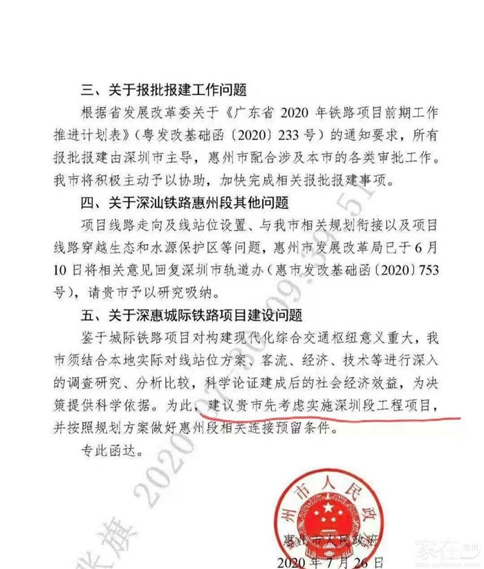 近日,一则关于深汕高铁、深惠城际项目建设方案的惠州政府批文流出。