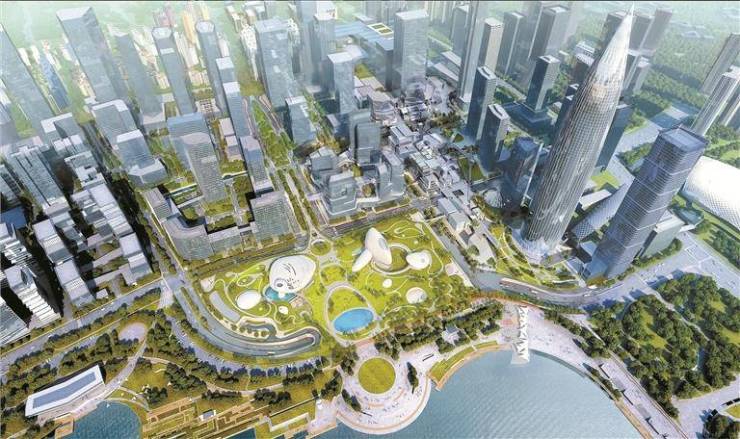 起伏的城市绿地和超现实的大地景观在此交织,从高空俯瞰,建筑群完全融入深圳湾城市与海湾的怀抱之中。