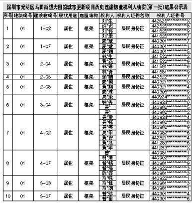 关于光明区马田街道大围拟城市更新项目权利人核实(第一批)结果的公示