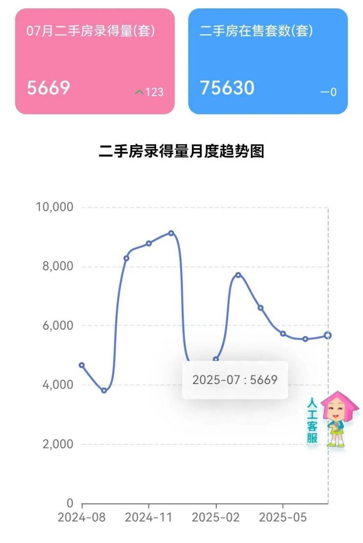 据统计,7月二手房录得量为5669套,环比上涨2.2%,同比增长5.4%。