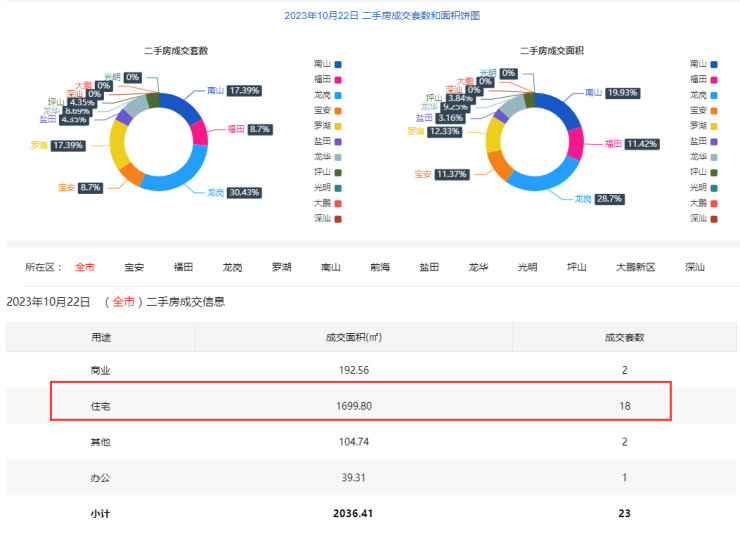 10月22日二手房住宅网签18套。宝安1套;福田2套;龙岗5套;罗湖3套;南山4套;盐田1套;龙华1套;光明0套;坪山1套;大鹏0套。