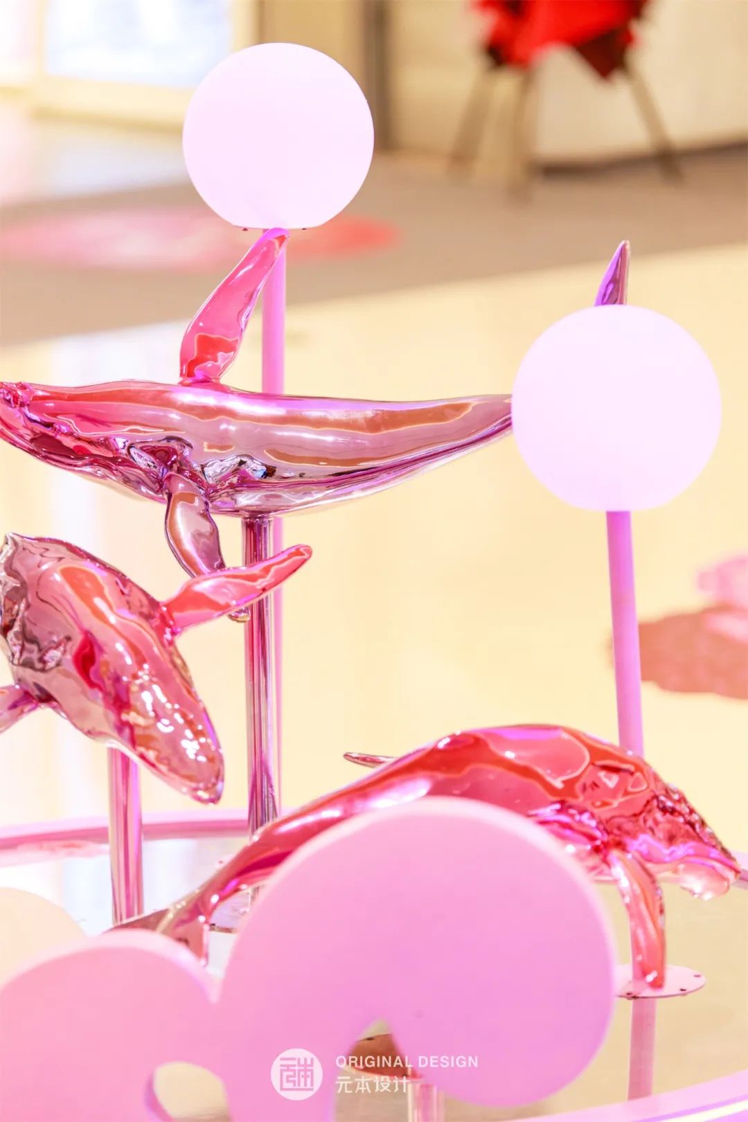 商场入目是马卡龙色调,让人忍不住上前触碰,金黄色的喇叭摆饰,仿佛可以听见深海传来的呼唤,和鲸的浅唱低吟,好奇的想去探索一二。
