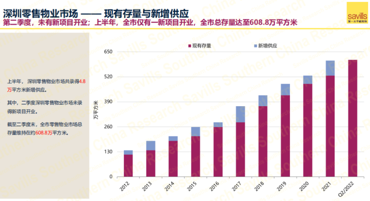 · 第二季度,深圳优质零售物业市场未录得新项目开业,市场总存量维持在608.8万平方米。