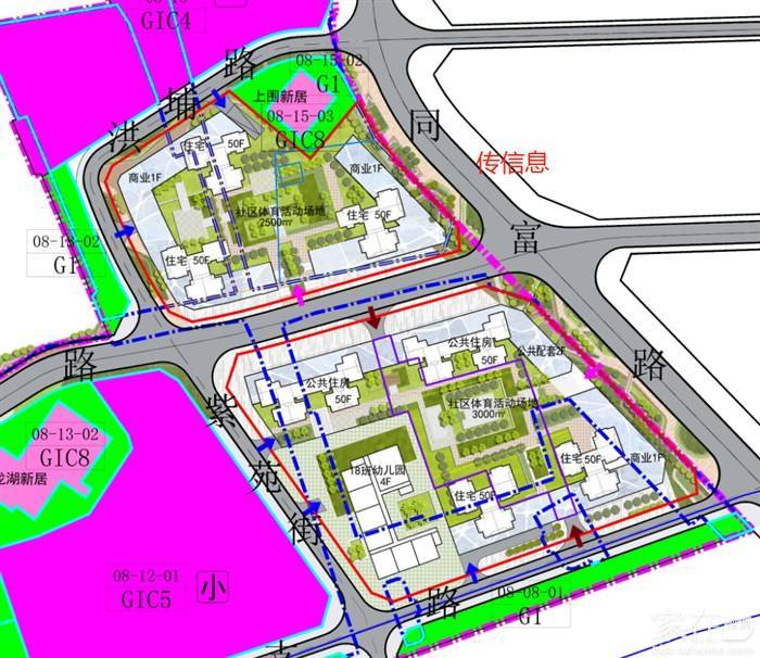 四块对外住宅用地,配建18班幼儿园,社区体育活动场地。