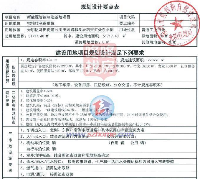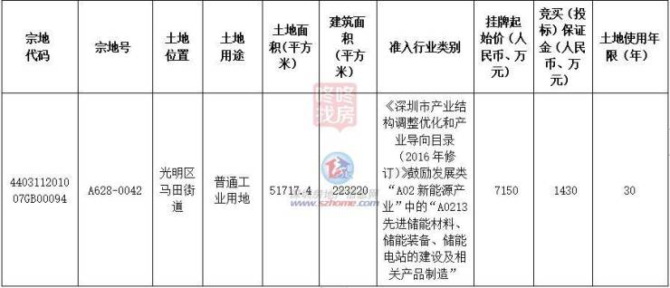 11月8日,深圳挂出一宗普通工业用地,位于光明区马田街道,计划于12月7日出让。