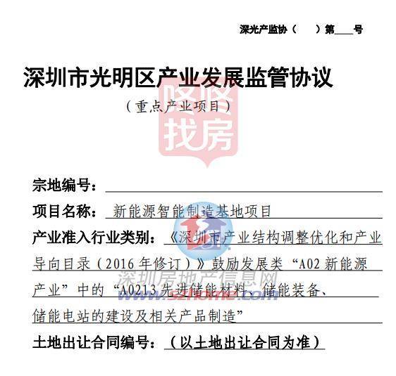 据产业监管协议显示,项目将建设新能源智能制造基地项目,其遴选方案显示,该项目的意向用地单位为深圳市飞荣达科技股份有限公司。