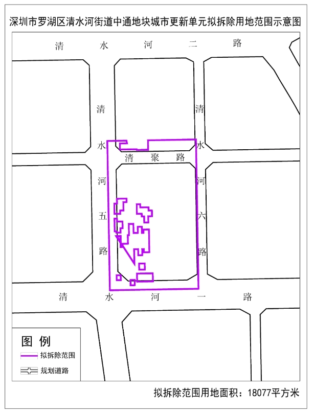 该项目位于罗湖区清水河街道,拟拆除重建范围18077㎡,拟更新方向为工业等功能。