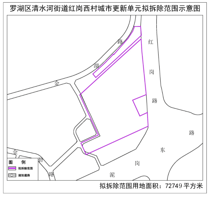 该项目位于罗湖区清水河街道,拟拆除重建范围72749平方米。